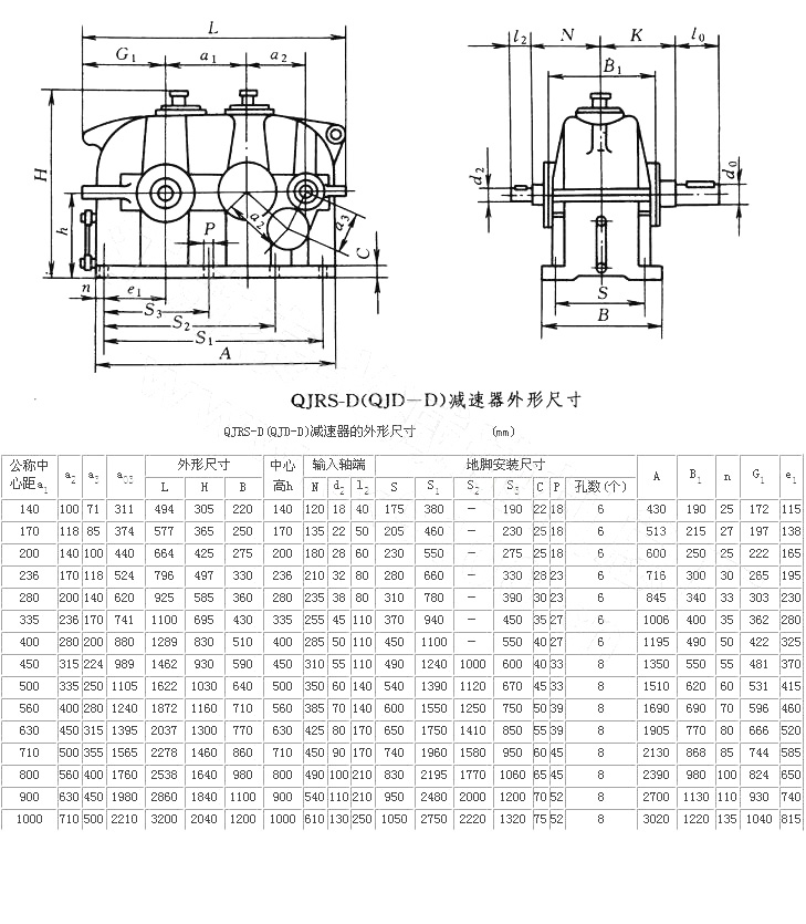 QJRS-D中硬齿面减速机图纸尺寸